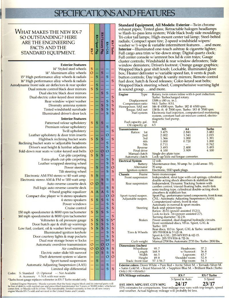 1986 Mazda RX-7 Dealer Sales Brochure