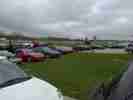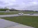 Saturday morning came, and it was wet. And cold. And windy. At least it wasn't raining. The caravan made it's way down to the track, and as always it was an impressive sight. After checking in at the track and having to park the Insight in the designated outsider (piston) parking, I slowly made my way to the vendor area, while stopping to talk to anyone with something to say. Nice to see some familiar faces from previous years. As luck would have it, I arrived in the vendor area just as they were unloading the 4 rotor car, Renesis display, and a few other Mazda goodies. From there, I spent much of the day at the seminar tent. While the two autocross tracks were in full swing, as well as the road course, seminars were presented on several topics. I enjoyed the Mazda presentation on the Renesis, Rotary History by Jerry Harding, the very basic tuning seminar by Rotary Performance, and the discussion that all these generated. It was particularily interesting to be able to look at the Renesis parts up close, too see the numerous differences between the high and low power version. Talking to the Rotamax guys was also an experience. Pay attention to them, because I think you'll soon be seeing big things. The only sad part about Saturday was the weather. With the cool temps and 30 MPH winds, it was far from ideal. This seemed to scare a lot of people away. Most were bundled up tightly, guzzling hot chocolate. I was disappointed that the drag was closed, but hey, there was already plenty to do. I have to give it to the spokesmodels though; they stuck through to the bitter end.