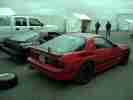 Sunday morning, I awoke bright and early and immediately headed to the track. It was rather disappointing to see the turnout. Many were still hungover from the night before (apparently, I missed a few "interesting" events), and many of those who weren't had already given up and were on their way home. Wusses. For the next hour or so, I occupied myself looking at a very nicely done 20B FC, all original RX-4, and all the various RX-7s. Soon enough, my attention was drawn towards the vendor area by the siren song of the full bridge 12A RX-2 track car that had just been fired. Since Steve Kahn was late for his seminar (what else is new? :) ), I was more then happy to bask in the glory of a full bridge breathing through an unmuffled 3" exhaust. Simply amazing. It probably took an hour for the smile to leave my face. And it was at that point that Mazda started up their 4 rotor. Wow. Just wow. The car started immediately, and it was clear how perfectly tuned the Motec system was. Both cars took to the track and did some laps, while the models took their photo-ops. Then, off to the seminar tent for a very informative talk by LeatherSeats.com. Sadly, there were only 6 in attendance, including IAN, Cheers! and myself. After the seminar, the track was virtually dead in the vendor area. Heading down to the pits showed that there were still a few die-hards running on the track, and a few people still in the "show" area on the grass. After checking out some of the cars on display (Turbo 1st gens, some modded TIIs, V8 2nd gens), we all headed back to the hotel.