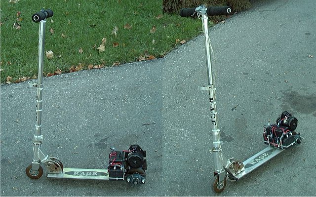 Hi Aaron! I found your site through Tzi's Scooterworld and am intending to build an electric micro-scooter too. You seem to be pretty much the only person on the web who has tried this and publicised the fact, hence my arrival here. The idea has only been conceived in the last few days so I have no parts and lots of questions.