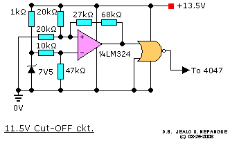 quote: Originally posted by JUAN DELA CRUZ Do you think IT can turn-off the reset (Pin9_4047) & the third input of a 4025 ? ..'coz I am planning to turn-off them simultaneously to make sure that the FETs are off when the battery voltage is low.