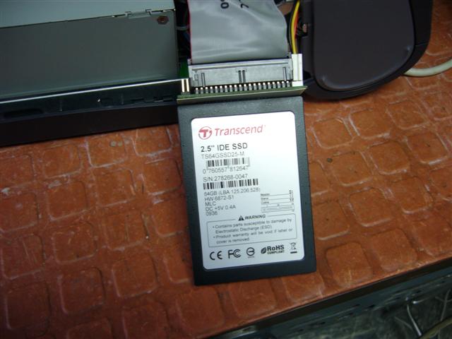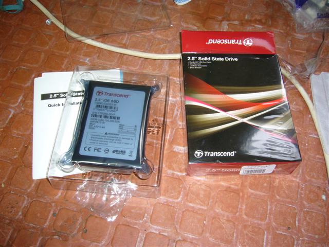 As the system was built just before the SATA switchover I figured I'd never find an IDE 2.5" SSD, but a few weeks ago I ran across some reviews of such a drive made by Transcend. They make 32, 64 and 128 GB MLC SSDs with an IDE interface. Unfortunately I couldn't buy one. All of the suppliers were either out of stock or wouldn't ship to Canada, so I finally bought from an eBay seller representing MWAVE.COM.