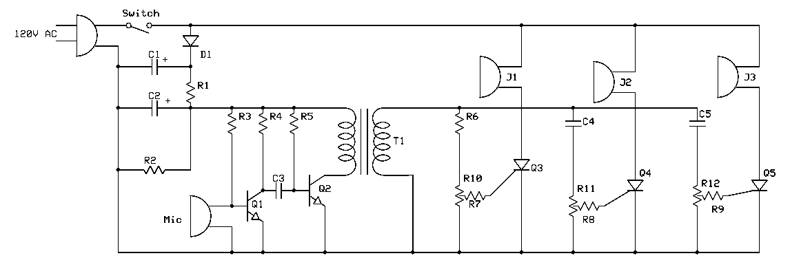 | Just built this circuit and it works great. Using a RCA connector instead of the mic and connecting it to the audio of my home theater system. |