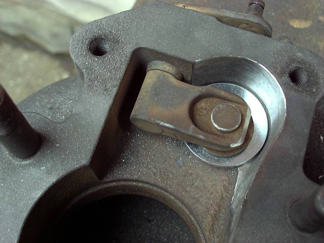 This new door can be made of many materials. Piston engine valve heads work well (and are a great irony), but any suitably thick (3MM roughly) washer will do the job. Shown in figure 5 is a large flat washer positioned to completely cover the new orifice. Some clearance will have to be left around the edges, or the door will jam as it pivots. In this case, one washer was too thin, so two washers were welded together. Regardless of the material you choose, you should have a few millimeters of "buffer area" around the edges of the flapper, to provide a sealing surface. An absolute seal is not critical, but that doesn't mean it should be sloppy.
